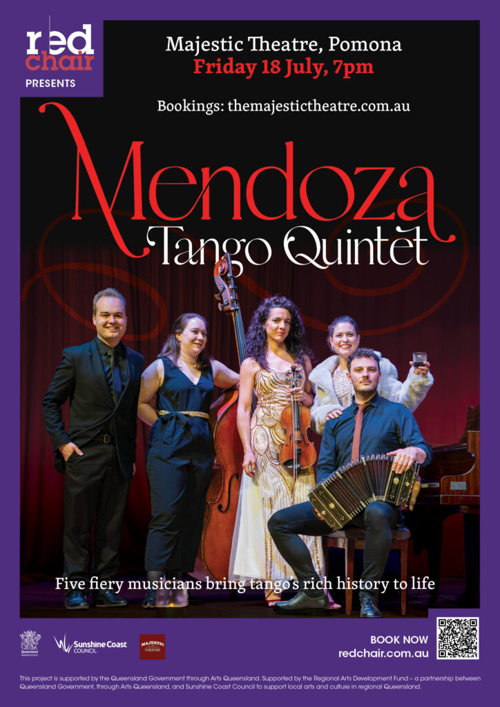 July 18, 2025 @ 7:00 pm – 9:00 pm – The Mendoza Tango Quintet has quickly gained a reputation as one of Australia’s leading tango exponents. The group is made up of five fiery, Australian-based musicians specialising in the performance of traditional Argentinian tango music. Featuring the quintessential ferocity of the bandoneón and the velvety voice of Solange Lipcin (Buenos Aires), the Mendoza Tango Quintet […]